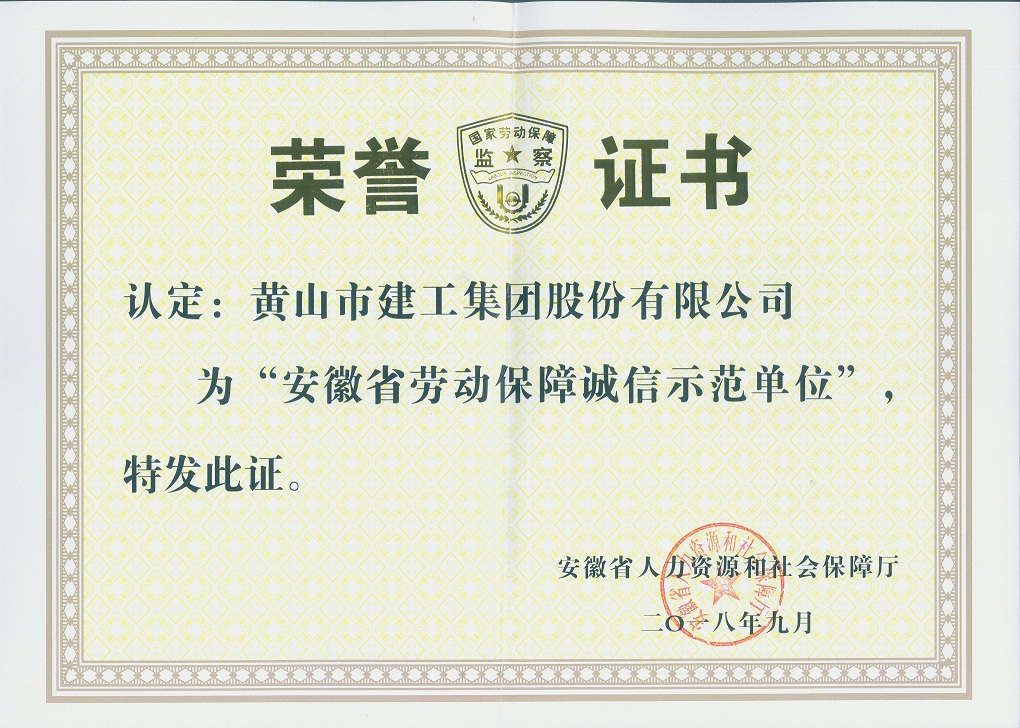 這是我公司第三次獲得“安徽省勞動(dòng)保障誠信示范單位”榮譽(yù)。